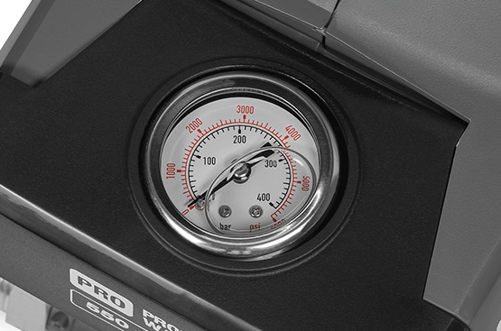 На мойке установлен аналоговый манометр для визуального контроля давления.