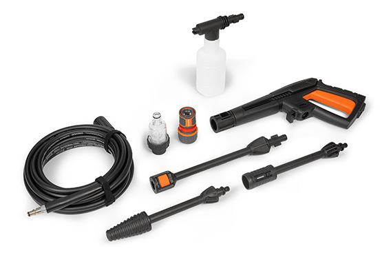 Помимо моющей насадки Home&Car Jet, в комплект поставки входит все необходимое: мягкий шланг высокого давления длиной 6м, грязевая фреза, пеногенератор, фильтр тонкой очистки, коннектор для садового шланга DWC 2500 с функцией аквастоп.